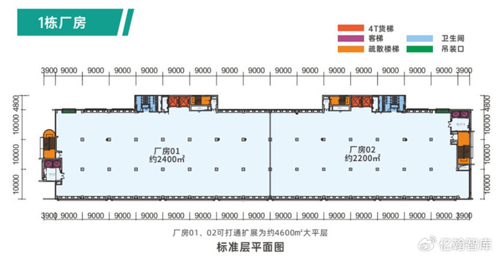 在产品设计上,项目突出大平层、宽柱距、重荷载、高层高等高标准设计。单层面积约1600-2400-3500-4600㎡,单位面积段约500-1000-1600-2400-4600㎡,首层层高8米、承重2吨,2-4层层高5.4米,承重1.2吨,5-13层层高4.5米,承重0.8吨,柱距约9*10米,每栋配套4台4吨货梯,每层设置吊装口,最大适配136米生产线,配置宽3.5米、高1米卸货平台,货运通路转弯半径12米,大型货车出入无忧,满足先进制造业全流程需求。
