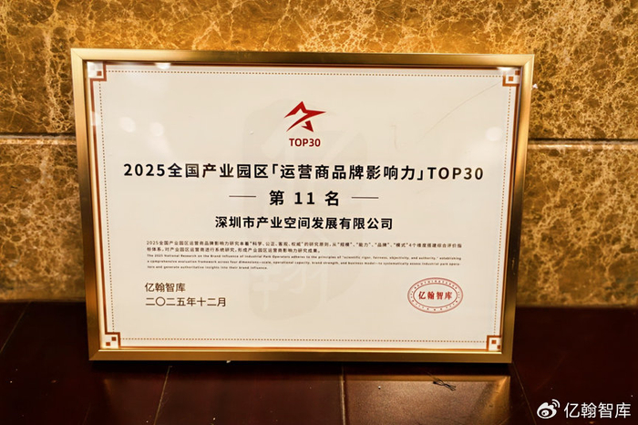 会上重磅发布了《2025产业园区优秀案例系列研究成果》,特区建工集团旗下深圳市产业空间发展有限公司凭借卓越的品牌影响力、专业的运营服务能力及优质的项目打造水准,获评“2025全国产业园区运营商品牌影响力TOP30”和“2025全国产业园区有限运营服务能力TOP10”两项荣誉。此外,其建设运营的光明数字智造产业园,凭借鲜明的产业特色与发展模式,获评“2025全国智能制造特色园区优秀项目十强案例”。