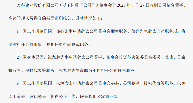 2025年1月27日,深圳地铁集团强势进驻万科,万科原有管理层来了场大洗牌,三个核心人物退了下来。