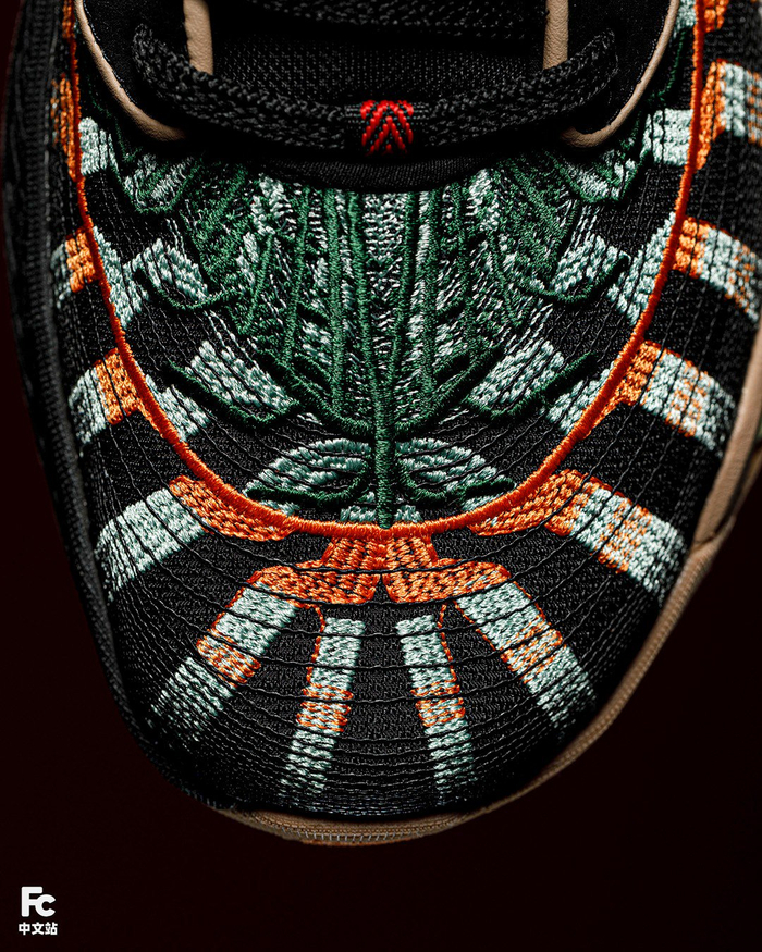 鞋面复杂的刺绣灵感源自印第安人传统的捕梦网,是一种辟邪的装饰挂件,与欧文的部落身份不谋而合。
