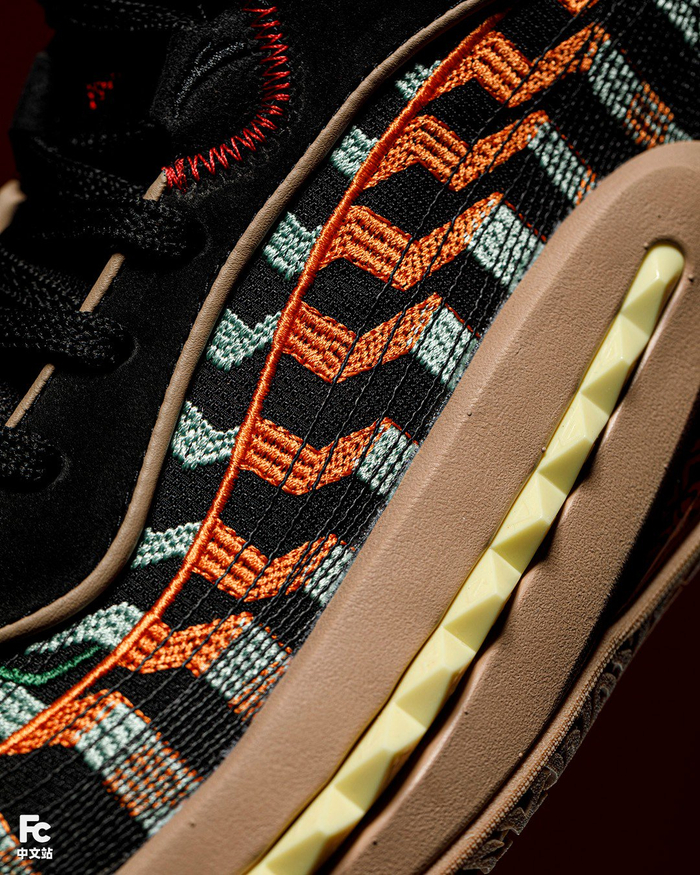 尽管安踏并没说狂潮6Pro和欧文有直接的联系,但这冲击眼球的部落风刺绣,简直再熟悉不过。