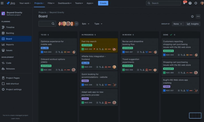 Jira 是全球范围内应用最广泛的敏捷项目管理工具之一,尤其在 Scrum、Kanban 等敏捷研发实践中占据重要地位。系统支持需求拆分、迭代规划、缺陷跟踪,并可通过插件扩展功能。