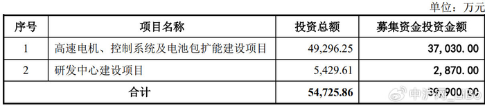 据招股书显示,晨光电机本次拟募集资金39,900.00万元,募集资金扣除本次发行费用后将用于公司“高速电机、控制系统及电池包扩能建设项目”、“研发中心建设项目”,具体如下: