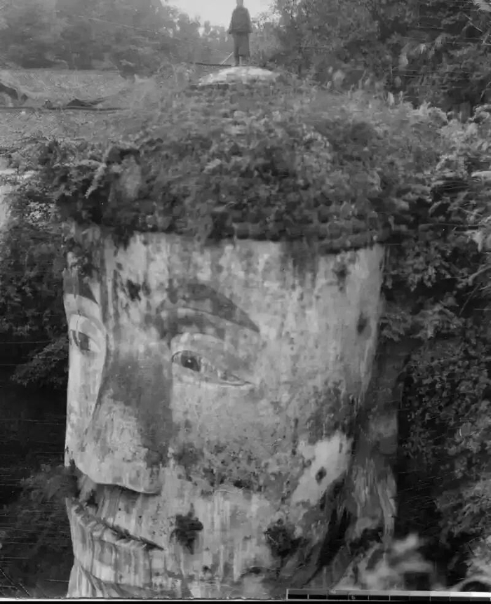 大佛建成后,古人便在其外搭建13层木阁“大像阁”抵御风雨,宋代改称“天宁阁”,后毁于战乱。北宋重修时,工匠将旧建材、剩余经卷与工程记录封入佛耳与胸腹的孔洞,既避免材料浪费,也为后世留下修缮印记。而铅皮函上的“海通”二字,推测是后世工匠为纪念这位开创者所刻,并非其亲手遗留。