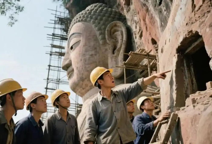1962年盛夏,四川乐山的湿气裹着热浪笼罩凌云山。一支文物修缮队正借着竹制脚手架,为乐山大佛修补风化的岩体。这尊通高71米的唐代摩崖石刻,已在三江汇流处矗立1200余年,风吹雨打的侵蚀让佛身布满裂隙,不少部位的石灰层早已斑驳脱落。当技术员刘德胜的锤子敲到大佛右耳垂时,一声沉闷的空洞回响划破山间寂静,打破了这场寻常修缮的节奏。