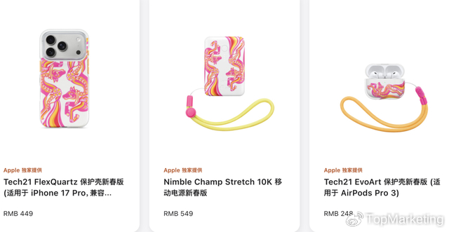 苹果马年限定手机壳以中国剪纸元素为灵感,由苹果联合防护品牌Tech21以及中国艺术家陈粉丸共同打造,粉红橙黄的配色将新春氛围拉满。这组马年限定手机壳配备MagSafe功能,适配iPhone 17系列、iPhone Air两款产品,但449元的高昂定价让网友直呼“割韭菜”。