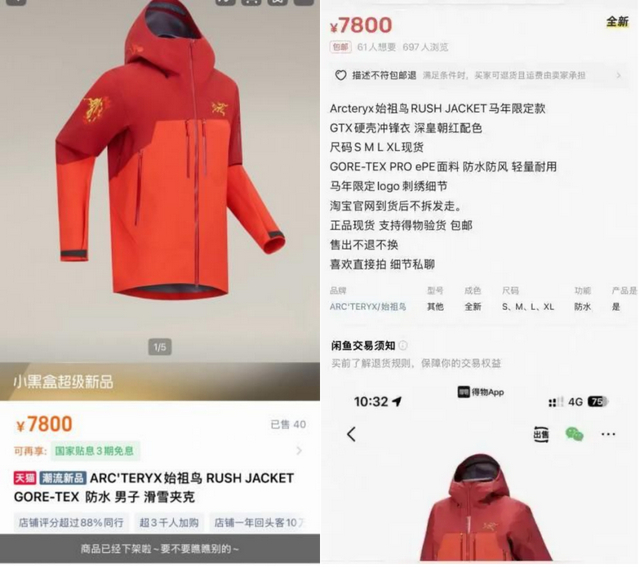 始祖鸟的新年限定款向来是二手市场上的“硬通货”,其蛇年限定款曾被炒至1.5万元。今年1月1日,始祖鸟马年限定RUSH系列在各大渠道上线。