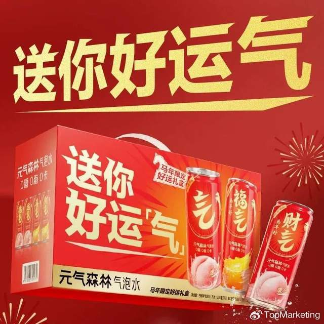 元气森林今年以“喝元气,好运气”为主题,推出马年限定好运礼盒系列。该礼盒包含“福气、喜气、财气、运气”四款,对应新春四大祝福,在外观上采用喜庆红罐设计,内置爆汁白桃、爆汁橙子两种广受欢迎的口味,将新春祝福与产品体验巧妙融合。