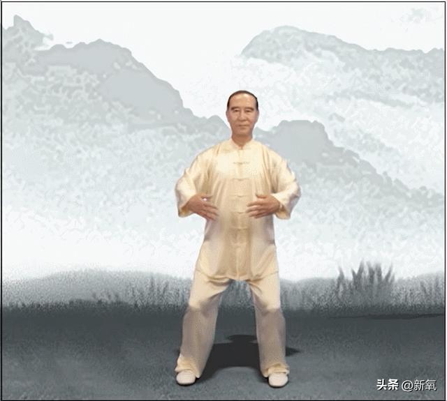 这些姐妹们,在练习中,不需要两手相贴,可以先把双手分开,与肩同宽。