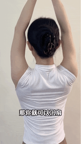 如果你能双手举过头顶,掌对掌相贴。找到让肩背稍微下沉的感觉,你就学会了沉肩!