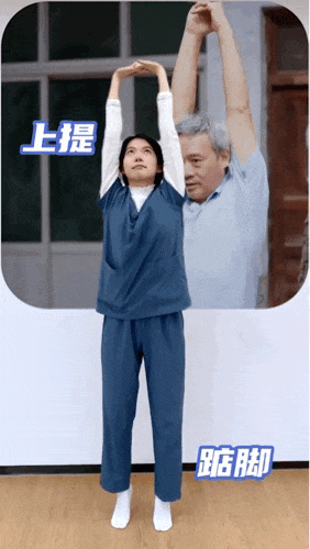 它和八段锦中的「两手托天理三焦」的部分动作,有异曲同工之妙哦