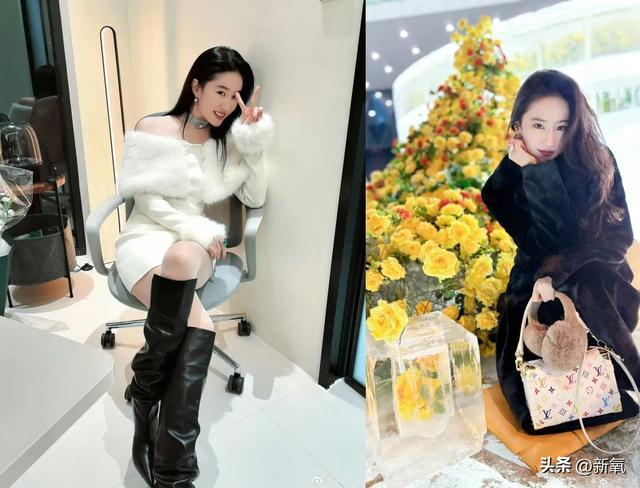 同样是最近的私服,左边俏皮风格的皮草就不如右侧简约大气的更适合她。