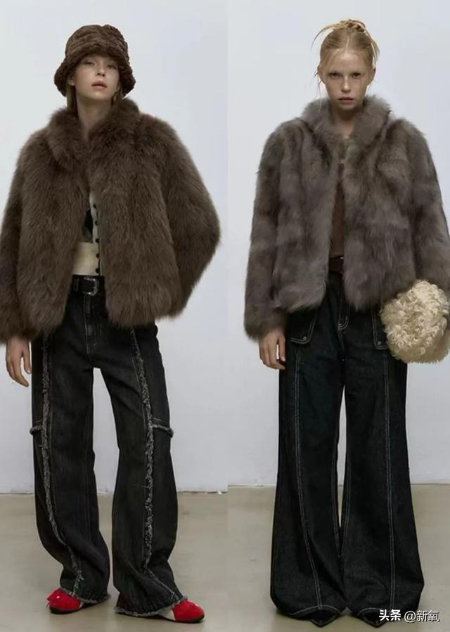 选择驼色或灰色短款皮草夹克,搭配深蓝色高腰牛仔裤,营造随性但富有贵族气质的风格。