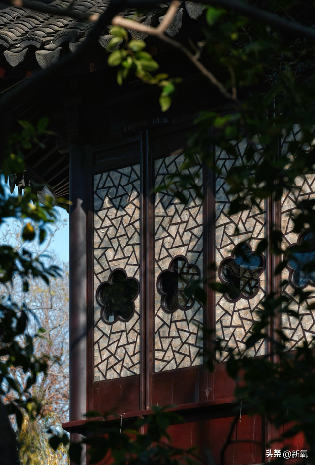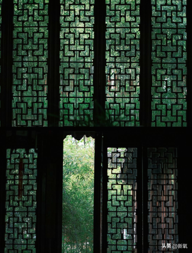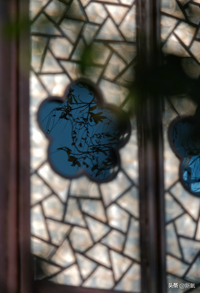 透过景窗,外面的景色若隐若现,含蓄又神秘。