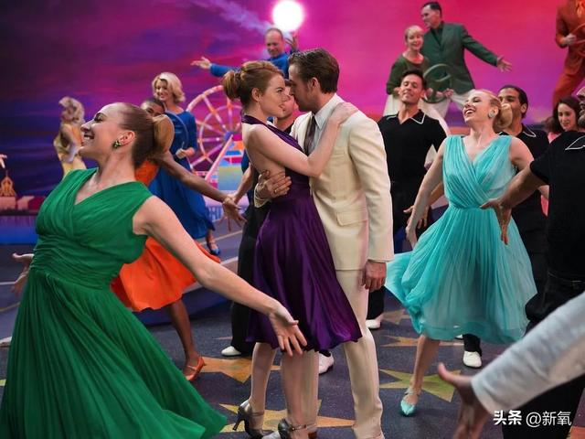 包括后面石头姐在《爱乐之城》里各色且干练的短款缎面连衣裙,在一众亮色穿搭里也美得很有质感。