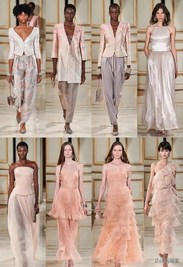 以色丁缎面为代表的绚烂色彩风格,主打繁盛的流光溢彩美,强调彩虹般的多彩感。