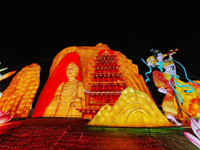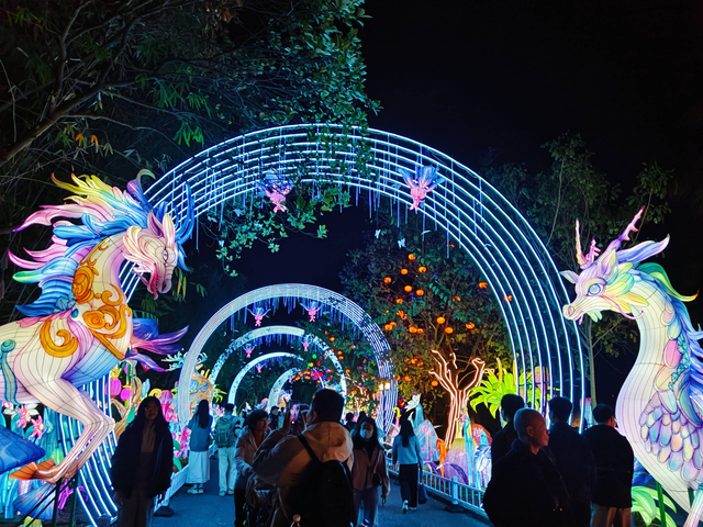 10000+盏彩灯,218组灯景,由一千多名非遗工匠精心打造。《簪花女神》依水而建,灵动温婉;暗黑风《齐天大圣》神秘奇幻;《赛博醒狮》融合传统与现代,每一处都美到失语!
