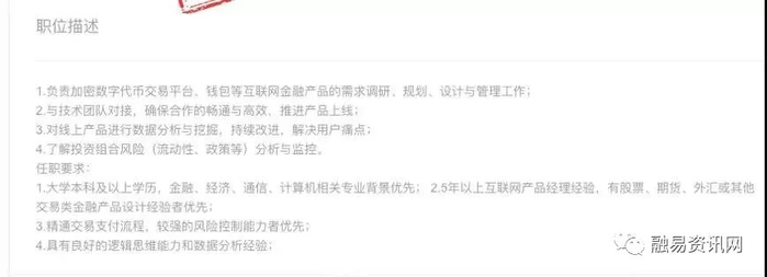 但在深圳市狮子软件有限公司的招聘中,融易资讯网发现,这家公司对产品经理岗位的招聘要求是数字货币平台、钱包的设计。