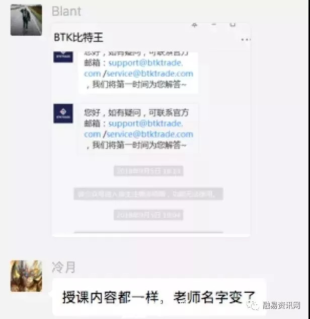 昨日,融易资讯网(微信公众号:irongeNews)接到多位维权人士的消息,称他们在名为 BTK 的交易平台上资金无法提现,客服失联。
