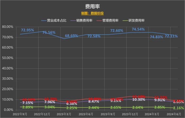 管理费用率为8.90%,比去年同期的10.80%明显降低;而销售费用率和研发费用率也均有所降低。
