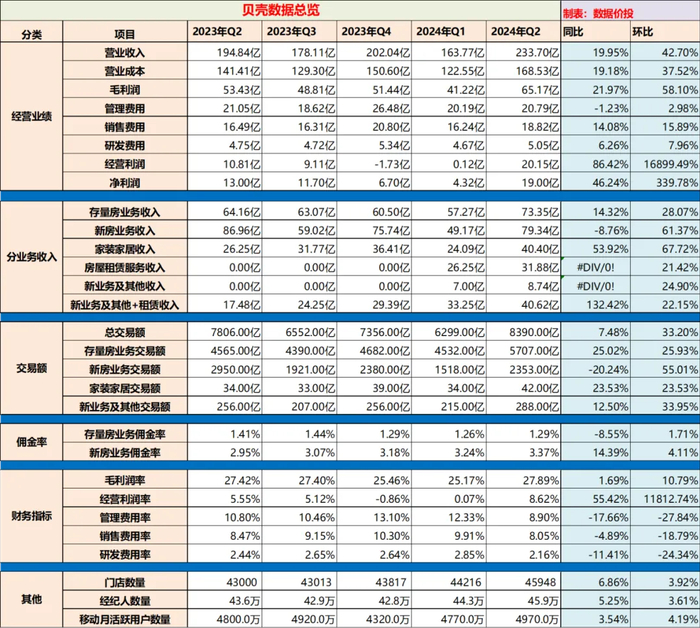 贝壳发布24年半年报,Q2营收同比增19.95%,净利润同比增46.24%,相比Q1增速均转跌为涨,且全面超出预期;虽算是地产链企业,但却交出了一份独立于地产行情的不俗成绩。