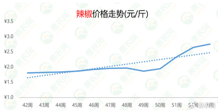 本周,辣椒的价格为2.8元/斤,较上周和去年同期分别上涨4%和62%。辣椒行情连续被推高的原因是辣椒主产区产量下滑,市场供应暂时紧张。