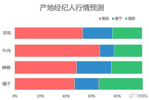据产地经纪人对热门品类后市行情预测:活鸡和辣椒后市行情大概率稳中有涨,看涨和看稳的合计比重均超过7成;牛肉后市价格盼涨情绪高,看涨的比重为66.7%;橘子方面,看涨和看跌各占一定的比重,但看涨的比重居多。