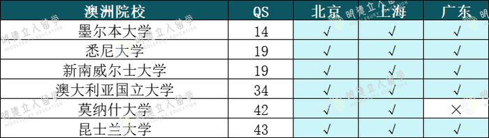 2024,澳大利亚大学在QS排名中的显著提升带来了积极影响,而在广东,除了莫纳什大学稍显遗憾地未能入选之外,其他排名靠前的澳大利亚高校均被列入了认可名单。北京和上海都对进入全球前50名的澳大利亚学府敞开了大门。