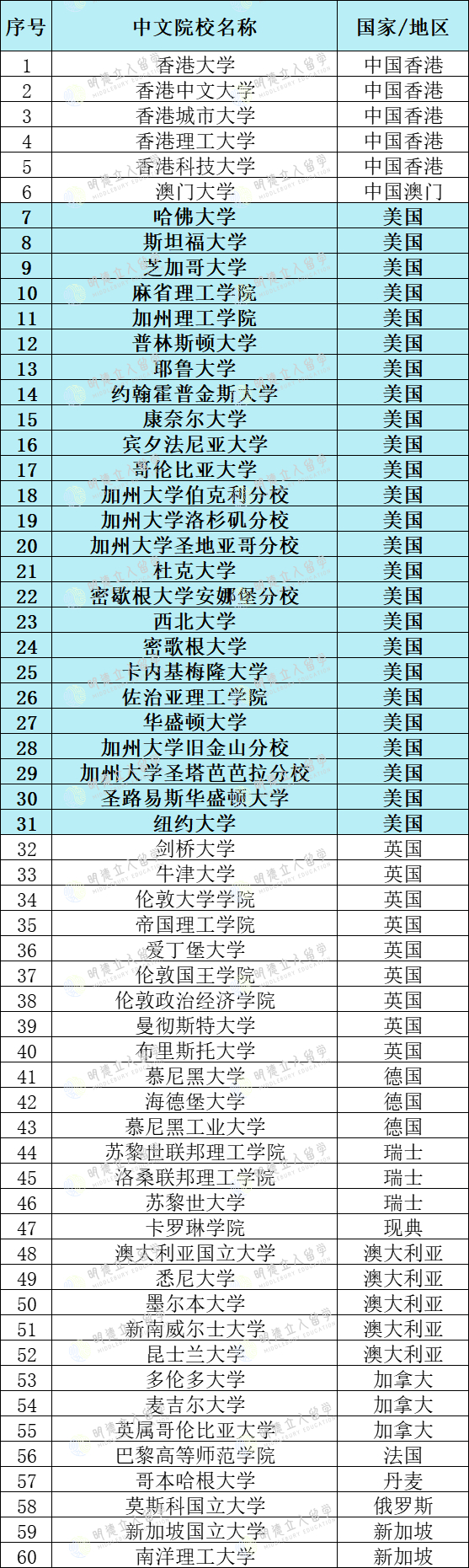 即使是那些排名在50到100之间的美国高校,也大多赢得了两地政策的青睐,证明了其不容小觑的实力。