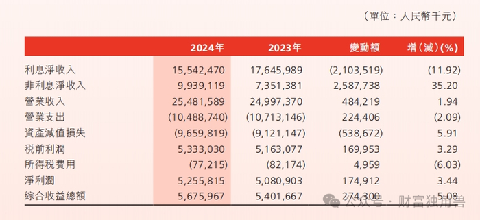 渤海银行在2024年度的经营数据反映了其收入结构的显著变化。根据年报,2024年该行的非利息净收入达到99.39亿元,较上年增长了35.20%。