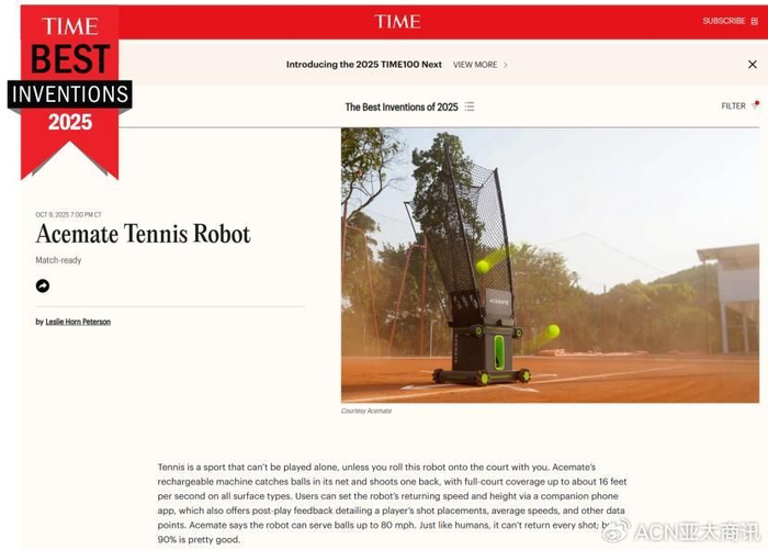 全球首款AI网球机器人Acemate上榜《时代》杂志2025年度最佳发明