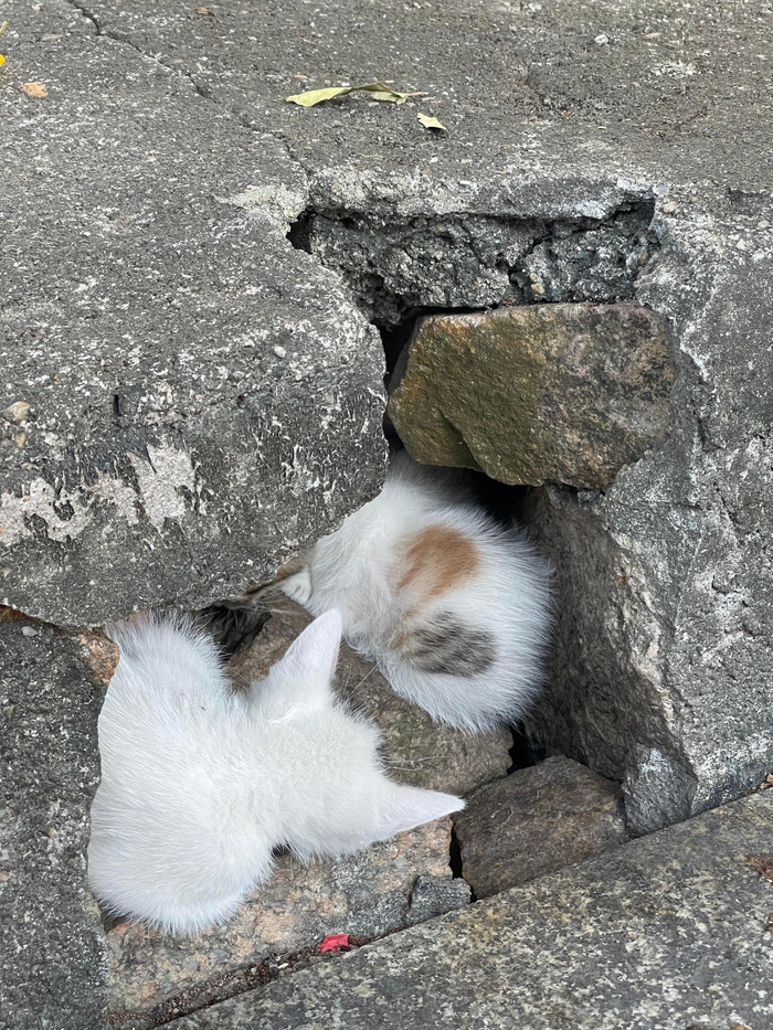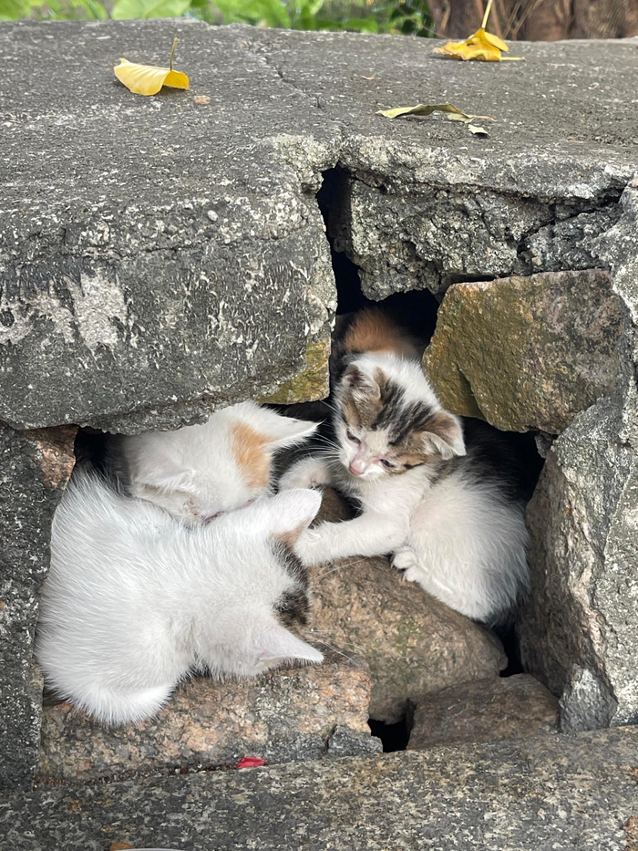 发现一个长满猫的洞穴骑着车在路边发现一个洞,里面全是小奶猫