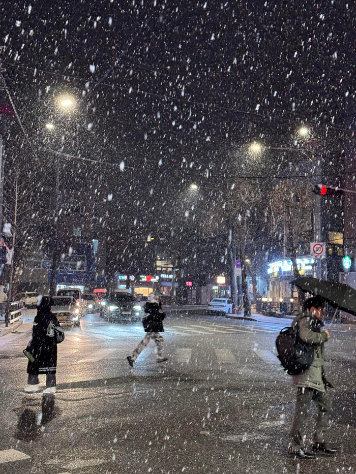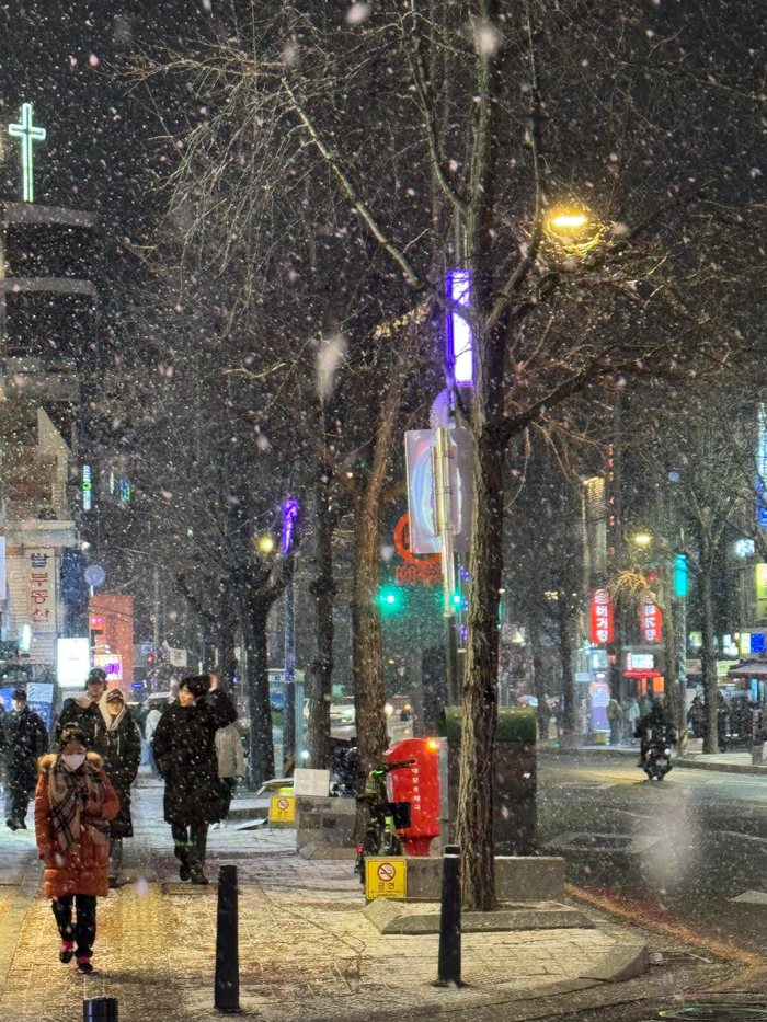 ❄️就现在!!首尔初雪超级大!!等到了!!!越下越大了!好好看啊好浪漫❄️