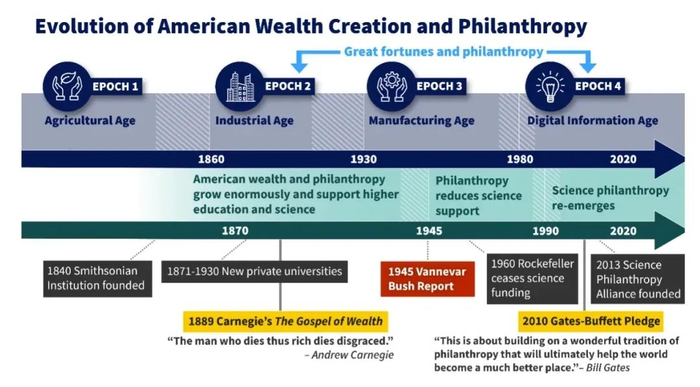 在这一框架下,我们可以说,我们低估甚至忽视了慈善事业长期以来所发挥的巨大作用,从而误解了美国科研事业的历史和实力。今天,慈善事业作为一股强大的力量重新崛起,在此,我试图对第三纪元进行重新梳理。