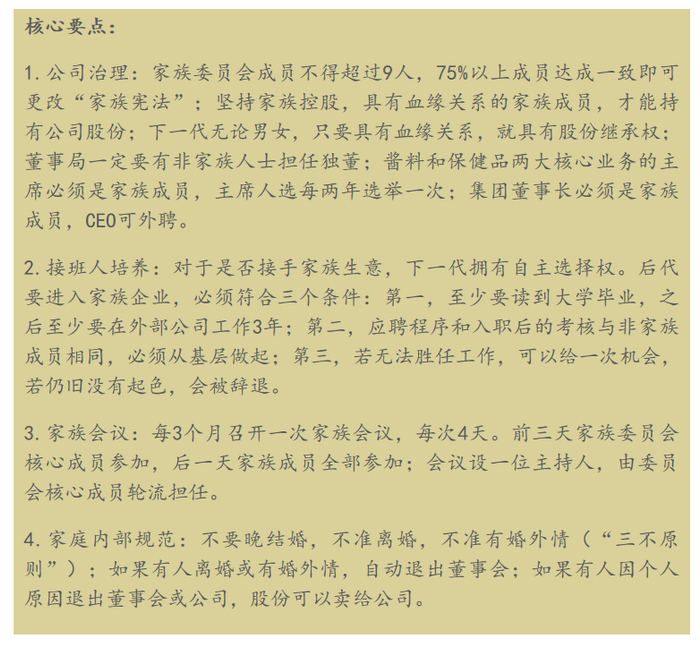 ▲李锦记《家族宪法》核心要点