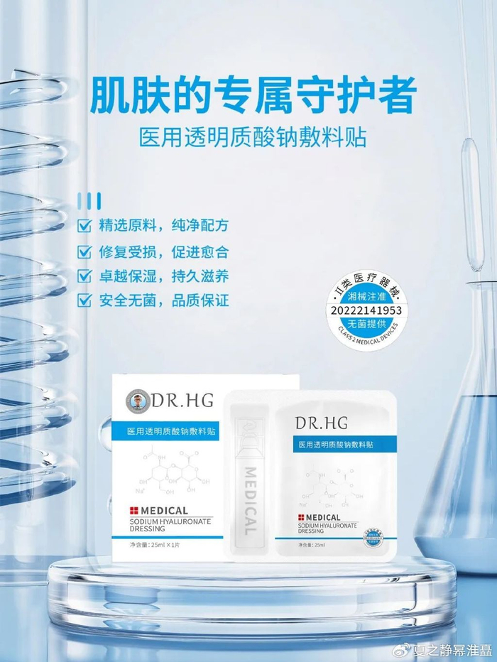 【DR.HG 医用透明质酸钠敷料贴】采用的工艺也十分独特,甄选多种创面护理成分,用于非慢性创面护理,能在创面表面形成保护膜,为创面愈合提供湿润微环境,助力伤口恢复。