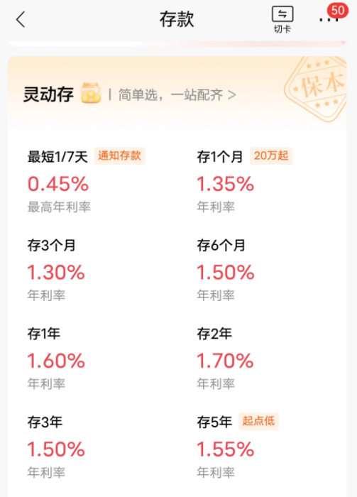 2022年某中小银行5年存款利率还有3.85%,这一次调整后,5年期存款利率只有1.85%。