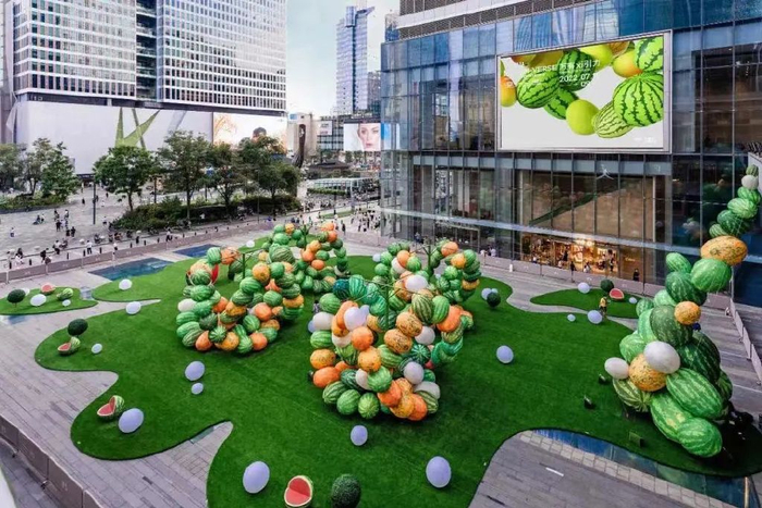 还有前几天刚刚开幕的以西瓜为创作元素,构建数字美学与结构美学并存的“西瓜宇宙”。“the MELON-VERSE万有xi引力”沉浸式互动艺术展,