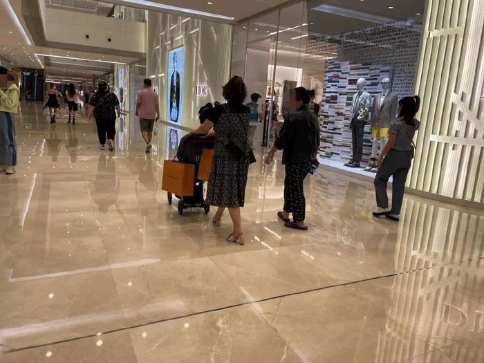 落到现场上,当时在成都IFS逛的时候,有两个场景让我印象很深刻:两位女士推着婴儿车,婴儿车上挂着两个LV的包装盒,出门之后直接去了Dior;还有一位男士提着CHANEL的包装盒进了Prada,看其步伐,应该属于进店就拿货的。