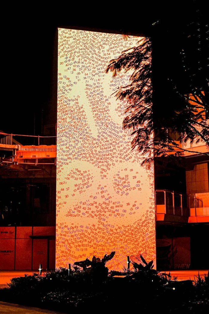 《涌动瞬息》:由中国视觉艺术家郭锐文创作的一个结合计算机生成艺术与实时显示时间功能的公共艺术装置。
