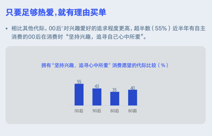55%的00后、43%的90后愿意为自己的兴趣爱好买单,他们更倾向于认同感。