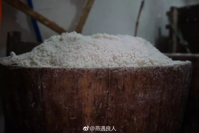 糯米是制作南通年糕最主要的原料,把糯米磨成粉,再加水、糖搅拌,加糖这一步是为了增加年糕的甜味。搅匀之后要一层一层撒到甑(zèng)里,盖上蒸笼,等锅里的水烧开了,水蒸气一层层穿透,待到40分钟后,热乎乎的年糕就出炉了。
