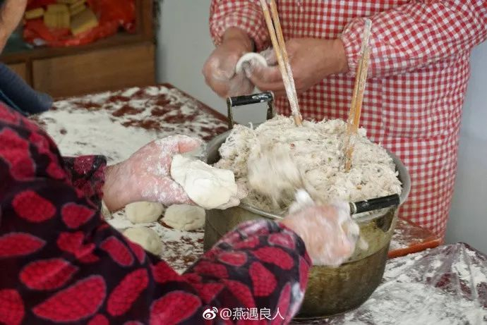 过年蒸的老酵馒头和平时吃的馒头又有一些不一样。在和面时加入酒酿,制作出的馒头皮嚼劲更胜平时。和面之后,切酵、摊平、包馅儿、合皮儿,动作一气呵成,看的人那叫一个痛快,这样的手艺可得是老师傅才了得呢。