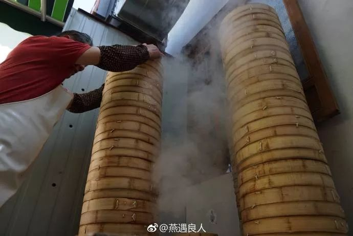 “上笼喽!”只听一声召唤,只见师傅们一把将蒸笼抱起,一层一层码齐。高高叠上数十层蒸笼,非得仰起脖子才看得到,高高的蒸笼,飘着热气,在寒冬腊月里,送来人世间最平凡的欢乐,也是腊月里南通街头最“热闹”的一道风景。