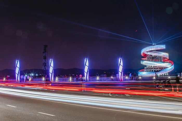 这里风光无限,夜色弥漫。千波桥,宛如一条闪闪发光的“腰带”,在“动态”灯光映照下,描绘出秀美的光影画卷,目之所及,一片绚烂。“太湖情 马山行”“万马奔腾”......光与影的美妙结合,使人沉醉其中。