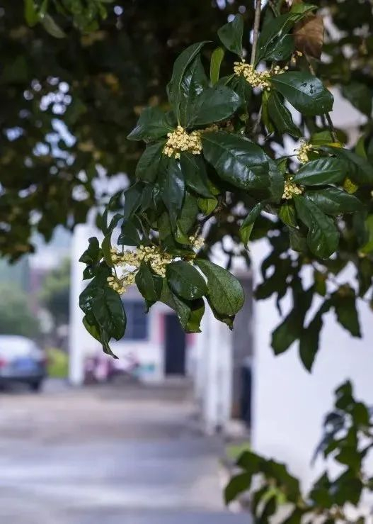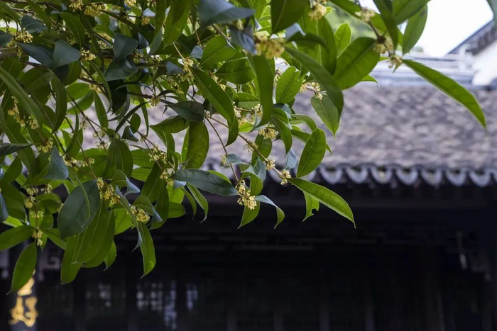 也因着开在拥有历史悠久的公园里,这儿的桂花都有一种古朴、风雅的美,与白墙、屋檐、石板路等相映衬时,更是别有意境。