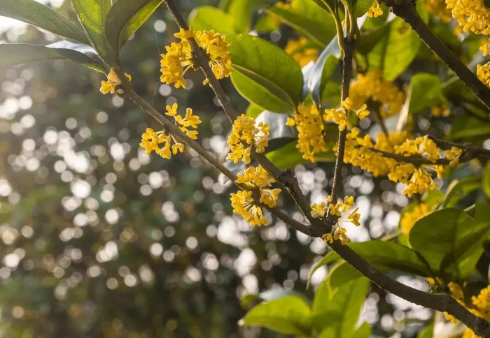 轻嗅桂花芳香,清冷之中带着一丝细甜,这香味不夺人气息,却有着相当的穿透力。在这漫天的香氛之下,即便秋风萧瑟,也能教游人陶醉。