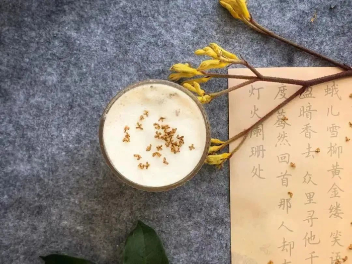 爱一朵花,就要把她吃掉!石塘三十七号咖啡推出的「桂花拿铁」,一定要在随风飘落的桂雨前,来上一杯。