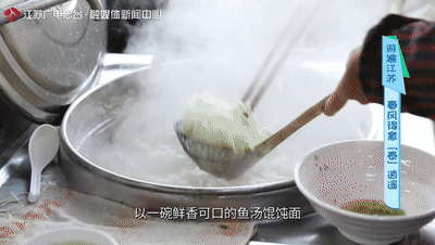 “一盘蟹,顶桌菜”,螃蟹作为泰州早茶的特色“四鲜”之一,在蟹黄包中得以充分发挥。此刻再来一碗鲜香可口的鱼汤馄饨面作为收尾,方能让食客心满意足了去。