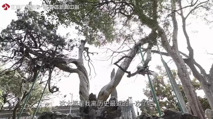 这棵古柏有着400多年的历史,如今已是是镇园之宝,它像一位沧桑的老人,见证着园子的历史和变迁。它与身后屹立着的三根石笋,共同形成了“石笋配古柏”这样独一份的组合。
